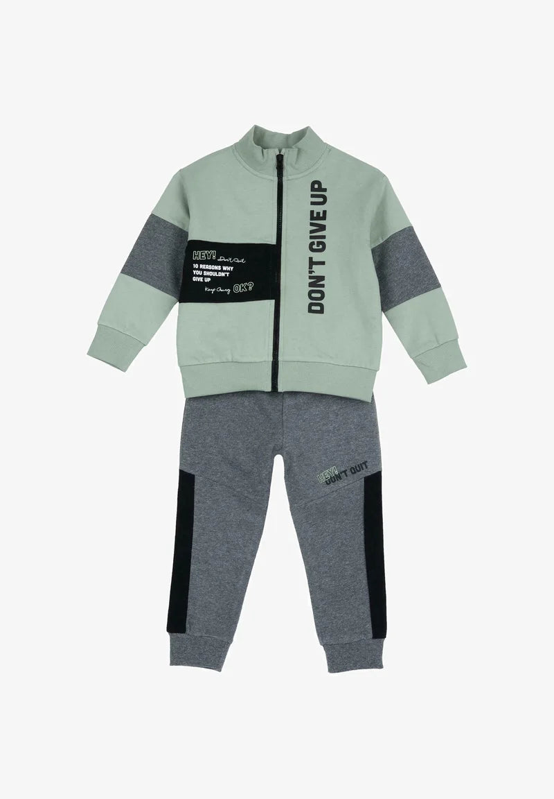Tuta Chicco con zip verde salvia che combina stile e praticità! La giacca in verde salvia presenta dettagli neri che aggiungono un tocco di carattere, mentre il pantalone grigio garantisce versatilità negli abbinamenti. La zip frontale facilita il cambio veloce, perfetta per i piccoli sempre in movimento. Un capo comodo e alla moda per il guardaroba del tuo bambino.